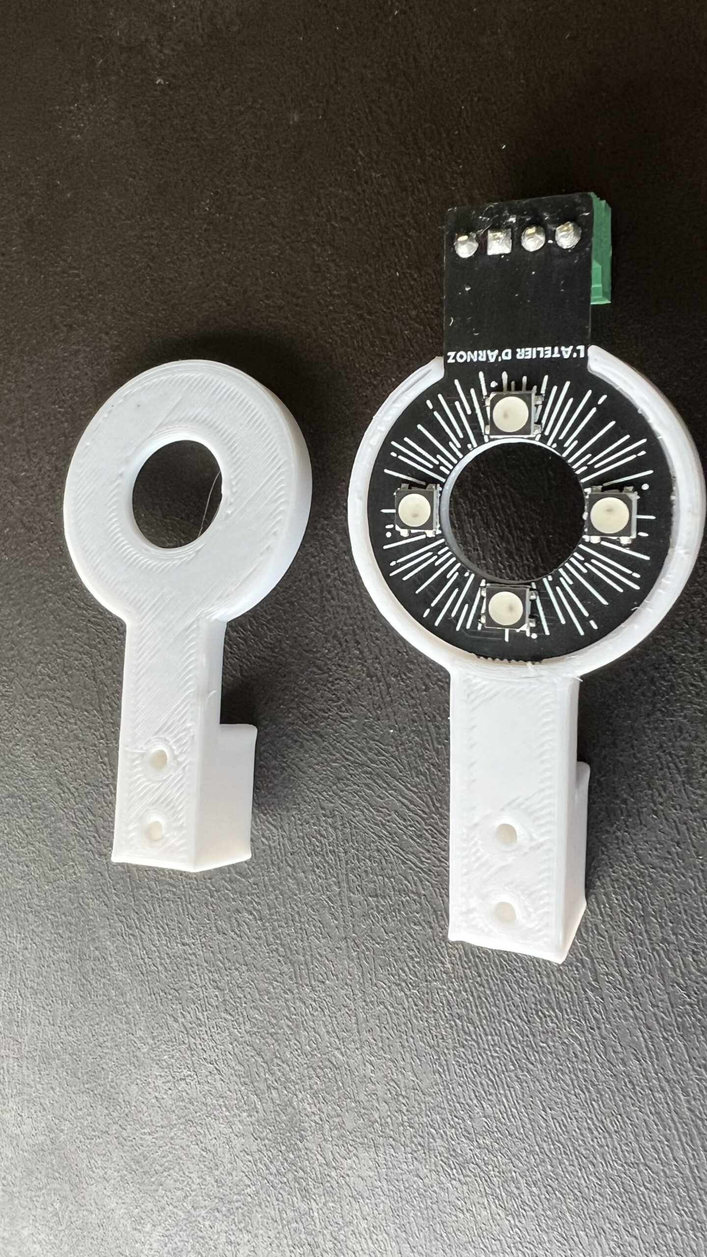 Permettant de guider la platine et d'éviter qu'elle soit prise en sandwich lors du serrage entre le cab et le support 3D.