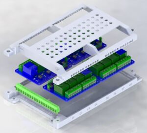 il suffit d’insérer un bornier, souder les fils du bornier aux cartes ( face inférieure comportant des rainures pour intégrer les fils